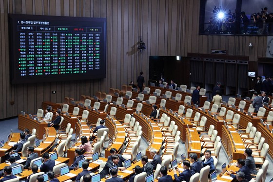 ‘107석’ 소수 야당이 된 국민의힘이 무기력증에 빠졌다. 국민의힘은 지난 5일 거대 여당이 된 더불어민주당이 국회 본회의를 열고 3대 특검법안(내란, 김건희, 순직 해병)을 일방 처리할 때도